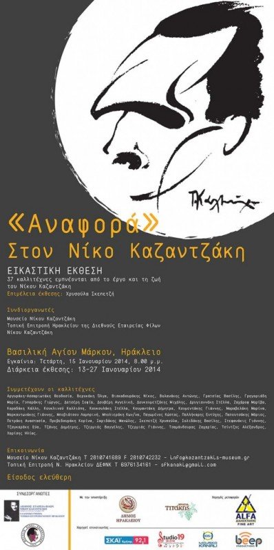 Το Μουσείο Νίκου Καζαντζάκη και η Τοπική Επιτροπή Νομού Ηρακλείου της Διεθνούς Εταιρείας Φίλων Νίκου Καζαντζάκη φιλοξενούν στο Ηράκλειο, στη Βασιλική του Αγίου Μάρκου, μια μεγάλη έκθεση αφιέρωμα στον Νίκο Καζαντζάκη.