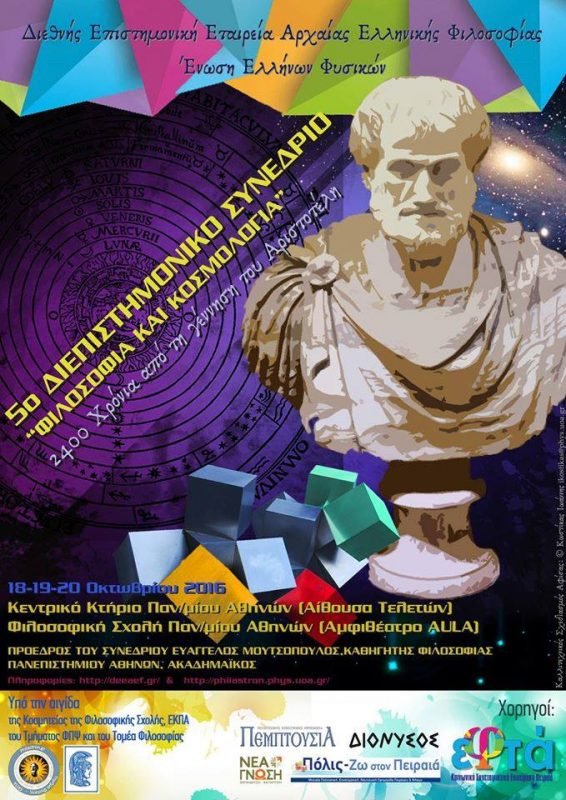 Στὸ Κεντρικὸ Κτήριο τοῦ Πανεπιστημίου Ἀθηνῶν (Μεγάλη Αἴθουσα Τελετῶν) – Φιλοσοφικὴ Σχολὴ τοῦ Πανεπιστημίου Ἀθηνῶν (Ἀμφιθέατρο AULA), 18-19-20 Ὀκτωβρίου 2016.