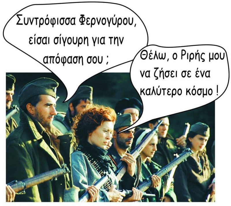 -Όμως φοβάμαι για τον Ριρή μου, γιατί έμαθα, ότι η πολιτοφυλακή του ΣΥΡΙΖΑ έχει μπλοκάρει τις εξόδους προς τα βουνά, για να κάνει εμπάργκο στους αντάρτες καπιταλιστές αυτοαπασχολούμενους !