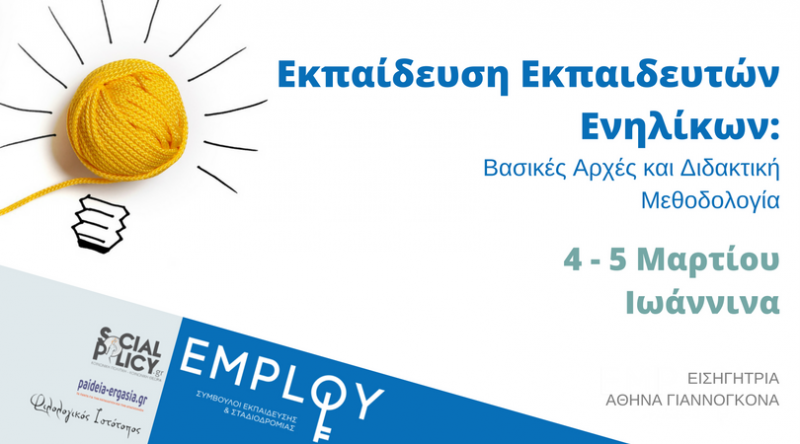 Ο τομέας Δια Βίου Εκπαίδευσης και το ΚΔΒΜ της Employ, ως πιστοποιημένο Κέντρο Δια Βίου Μάθησης και αδειοδοτημένος πάροχος Δια Βίου Μάθησης από τον Εθνικό Οργανισμό Πιστοποίησης Προσόντων & Επαγγελματικού Προσανατολισμού (Ε.Ο.Π.Π.Ε.Π.) του Υπουργείου Παιδείας (Α.Π.7459/2014), υλοποιεί το επιμορφωτικό πρόγραμμα “Εκπαίδευση Εκπαιδευτών Επαγγελματικής Εκπαίδευσης και Κατάρτισης: Βασικές Αρχές και Διδακτική Μεθοδολογία” προκειμένου να ενημερώσει και να καταρτίσει τους συμμετέχοντες στο θεματικό πεδίο της Εκπαίδευσης Ενηλίκων. Η στοχοθεσία του προγράμματος διαρθρώνεται στο πνεύμα της φιλοσοφίας της δια βίου μάθησης και της ανάγκης απόκτησης ωφέλιμων γνώσεων και περισσότερων αξιοποιήσιμων προσόντων στο σχετικό πεδίο καθώς και πρακτικής αξιοποίησης των γνώσεων και στα ΣΔΕ.