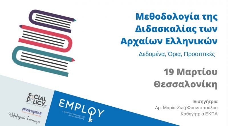 Ο τομέας Δια Βίου Εκπαίδευσης και το ΚΔΒΜ της Employ, ως πιστοποιημένο Κέντρο Δια Βίου Μάθησης και αδειοδοτημένος πάροχος Δια Βίου Μάθησης από τον Εθνικό Οργανισμό Πιστοποίησης Προσόντων & Επαγγελματικού Προσανατολισμού (Ε.Ο.Π.Π.Ε.Π.) του Υπουργείου Παιδείας (Α.Π.7459/2014), υλοποιεί το επιστημονικό σεμινάριο “Μεθοδολογία της Διδασκαλίας των Αρχαίων Ελληνικών” προκειμένου να ενημερώσει και να καταρτίσει τους συμμετέχοντες στο θεματικό πεδίο της Εκπαίδευσης & της Διδακτικής.