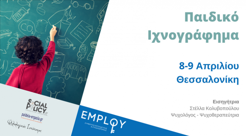 Ο τομέας Δια Βίου Εκπαίδευσης και το ΚΔΒΜ της Employ, ως πιστοποιημένο Κέντρο Δια Βίου Μάθησης και αδειοδοτημένος πάροχος Δια Βίου Μάθησης από τον Εθνικό Οργανισμό Πιστοποίησης Προσόντων & Επαγγελματικού Προσανατολισμού (Ε.Ο.Π.Π.Ε.Π.) του Υπουργείου Παιδείας (Α.Π.7459/2014), υλοποιεί το επιστημονικό σεμινάριο “Το Παιδικό Ιχνογράφημα ως Διαγνωστικό Εργαλείο” προκειμένου να ενημερώσει και να καταρτίσει τους συμμετέχοντες στο θεματικό πεδίο της Εκπαίδευσης και της Ψυχολογίας.