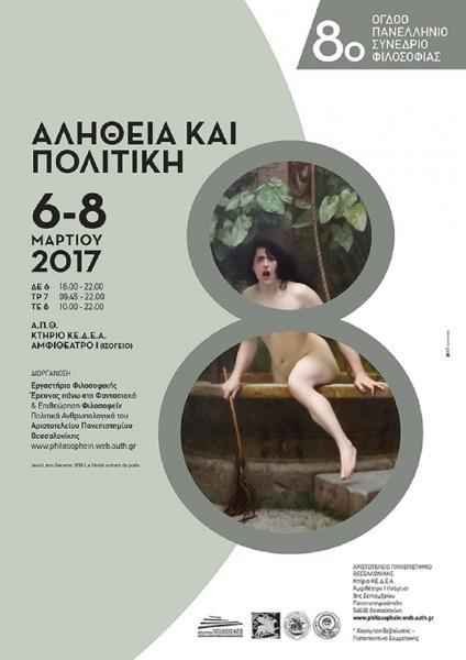 Το Εργαστήριο Φιλοσοφικής Έρευνας πάνω στο Φαντασιακό και η Επιθεώρηση Φιλοσοφείν. Πολιτικά Ανθρωπολογικά του Αριστοτελείου Πανεπιστημίου Θεσσαλονίκης με τη συνδρομή της Επιτροπής Ερευνών του διοργανώνουν το όγδοό των (8ο) Πανελλήνιο Συνέδριο Φιλοσοφίας με θέμα: Αλήθεια και Πολιτική.