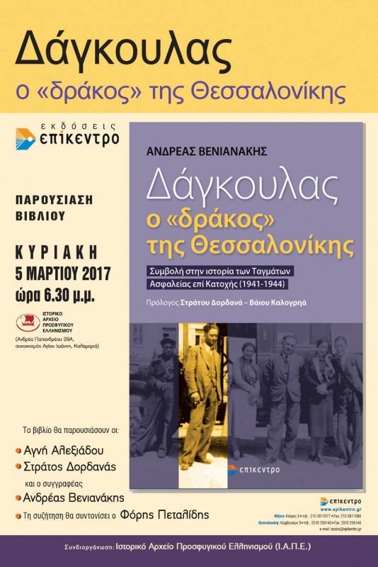 Παρουσίαση του βιβλίου του Ανδρέα Βενιανάκη: “Δάγκουλας, ο “δράκος” της Θεσσαλονίκης. Συμβολή στην ιστορία των Ταγμάτων Ασφαλείας επί Κατοχής (1941-1944)”.