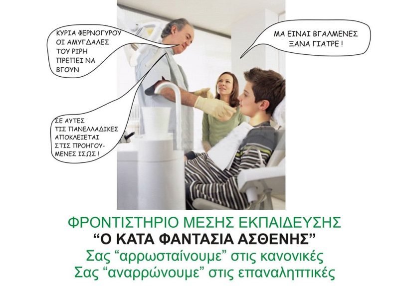 – Σας έχω εμπιστοσύνη στο βαρύ εκπαιδευτικό έργο το οποίο εκπονείτε κύριε διευθυντά του «ΚΑΤΑ ΦΑΝΤΑΣΙΑ ΑΣΘΕΝΗ». Δεν χρειάζεται να εκθέσετε περεταίρω τις μεθόδους σας καθότι έχω πειστεί. Προωθείστε παρακαλώ την εγγραφή του Ριρή στο έξοχο φροντιστήριο σας !