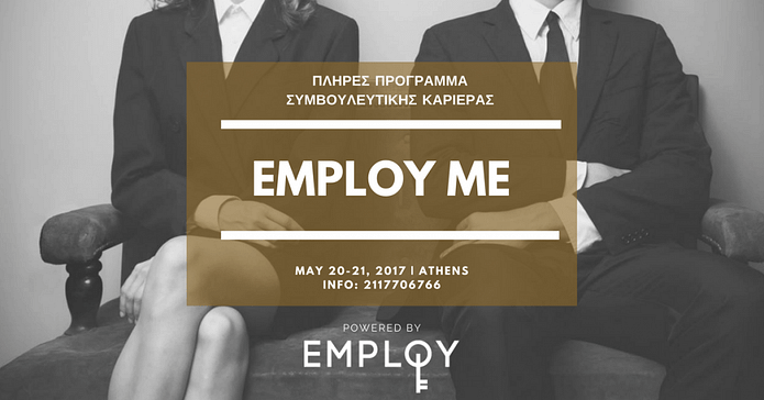 Ο τομέας Στρατηγικής Καριέρας και το ΚΔΒΜ της Employ, ως πιστοποιημένο Κέντρο Δια Βίου Μάθησης και αδειοδοτημένος πάροχος Δια Βίου Μάθησης από τον Εθνικό Οργανισμό Πιστοποίησης Προσόντων & Επαγγελματικού Προσανατολισμού (Ε.Ο.Π.Π.Ε.Π.) του Υπουργείου Παιδείας (Α.Π.7459/2014), υλοποιεί το workshop “Employ Me: Γίνε ο επαγγελματίας του αύριο” προκειμένου να παρέχει ολοκληρωμένη καθοδήγηση και υποστήριξη σε όσους αναζητούν εργασία, καθώς επίσης και σε όλους αυτούς που επιθυμούν να ανελιχθούν επαγγελματικά ή να αλλάξουν επαγγελματική σταδιοδρομία.