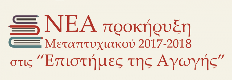 Ανακοινώνεται η παράταση της υποβολής των αιτήσεων-δικαιολογητικών του ΠΜΣ «Επιστήμες της Αγωγής» έως 30/06/2017 για το ακαδημαϊκό έτος 2017-2018 στις κατευθύνσεις: