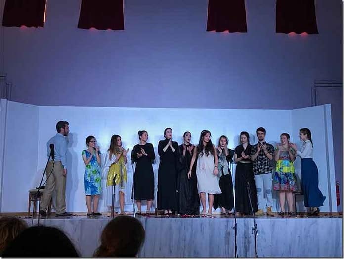 Πώς μπορεί να ερμηνευτεί άραγε ότι φέτος συμμετείχαν οι άριστοι των αρίστων μαθητών του σχολείου μας ανακαλύπτοντας για μια ακόμα φορά τη χαρισματικότητα της προσωπικότητάς των; Πώς να μην τονίσω την τόσο εξαίρετη ερμηνεία της Δέσποινας και του Γεράσιμου, μαθητών της Γ΄Λυκείου, που εν μέσω των φοβερών απαιτήσεων των Πανελλαδικών εξετάσεων έδωσαν την ψυχή τους για να φτάσουν όλους μας και τους εαυτούς τους σε μια γεύση κορύφωσης της τέχνης;