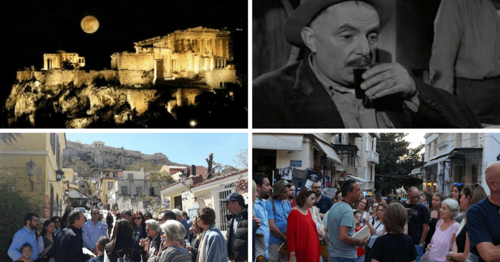 Μετά τον περίπατό μας στη αυλή του Μουσείου θα απολαύσουμε αποσπάσματα από ελληνικές ταινίες που έχουν γυριστεί στην Πλάκα.