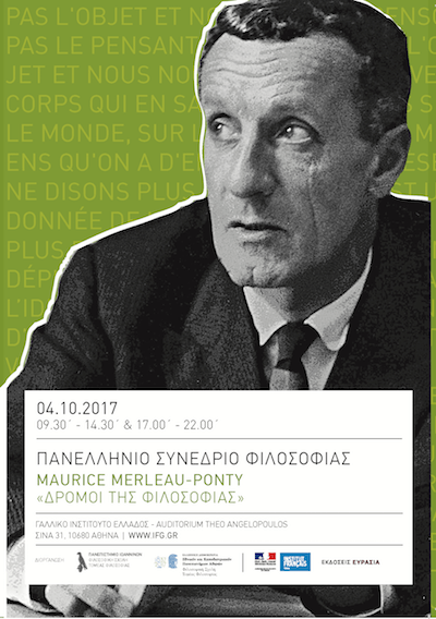 Με αφορμή την ελληνική έκδοση της Φαινομενολογίας της αντίληψης (Εκδόσεις Νήσος, 2016) του Maurice Merleau-Ponty και τις πρόσφατες μελέτες για το έργο του, οι Τομείς Φιλοσοφίας των Πανεπιστημίων Ιωαννίνων και Αθηνών διοργανώνουν φιλοσοφικό συνέδριο με αντικείμενο τον στοχασμό του σπουδαίου γάλλου φαινομενολόγου. Το Συνέδριο θα διεξαχθεί στις 4 Οκτωβρίου 2017, στο Γαλλικό Ινστιτούτο Αθηνών.
