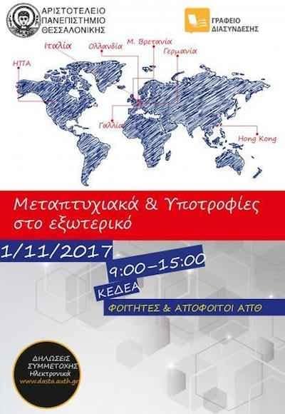 To Γραφείο Διασύνδεσης διοργανώνει ενημερωτική εκδήλωση με θέμα: “Μεταπτυχιακά και Υποτροφίες στο Εξωτερικό”
