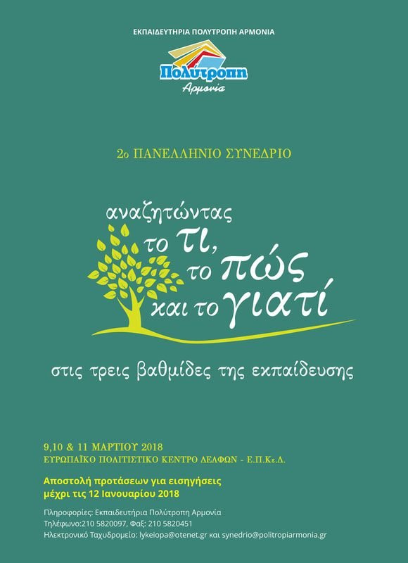 Τα Εκπαιδευτήρια Πολύτροπη Αρμονία διοργανώνουν Πανελλήνιο Συνέδριο με θέμα: «Αναζητώντας το τι, το πώς και το γιατί στις τρείς βαθμίδες της εκπαίδευσης».