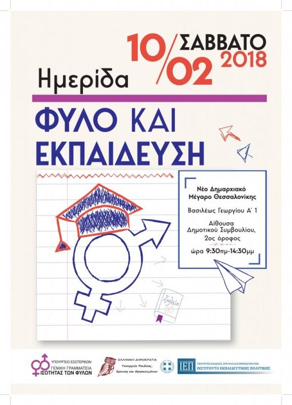 και η Γενική Γραμματεία Ισότητας των Φύλων σας προσκαλούν στην Ημερίδα που συνδιοργανώνουν με τίτλο: «ΦΥΛΟ και ΕΚΠΑΙΔΕΥΣΗ».