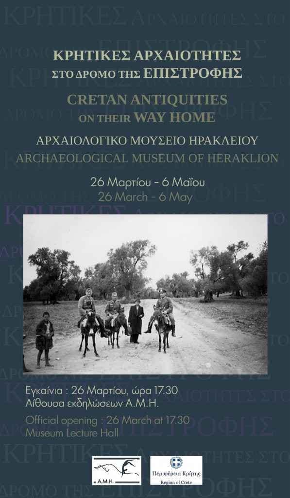 Α. Περιοδική έκθεση  “ΚΡΗΤΙΚΕΣ ΑΡΧΑΙΟΤΗΤΕΣ ΣΤΟ ΔΡΟΜΟ ΤΗΣ ΕΠΙΣΤΡΟΦΗΣ”: Με αφορμή τον πρόσφατο επαναπατρισμό 26 κρητικών αρχαιοτήτων από την Κνωσό με πρωτοβουλία του Αρχαιολογικού Ινστιτούτου του Πανεπιστημίου του Graz, όπου βρίσκονταν μέχρι το Νοέμβριο του 2017, διοργανώνεται μικρής κλίμακας αρχαιολογική περιοδική έκθεση, στην οποία παρουσιάζονται 34 αρχαία έργα που φυγαδεύτηκαν παράνομα από Γερμανούς αξιωματικούς την περίοδο της Γερμανικής Κατοχής και επαναπατρίσθηκαν σε διαφορετικές χρονικές συγκυρίες από το 1948 έως σήμερα. Η έκθεση θα φιλοξενείται στην Αίθουσα πολλαπλών χρήσεων του ΑΜΗ και θα διαρκέσει από 26 Μαρτίου έως 6 Μαΐου.