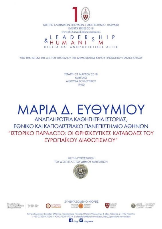 Ο Διευθυντής του Κέντρου Ελληνικών Σπουδών (Ελλάδος), Πανεπιστήμιο Harvard σας προσκαλεί στην προσεχή διάλεξη