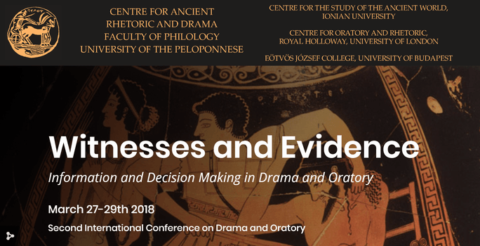 Το δεύτερο Διεθνές Συνέδριο για το Αθηναϊκό Δράμα και την Αττική Ρητορεία, με θέμα «Μάρτυρες και Μαρτυρία. Συλλογή Πληροφοριών και Λήψη Αποφάσεων στο Αθηναϊκό Δράμα και στην Αττική Ρητορεία-Από την Αρχαιότητα έως το Βυζάντιο» οργανώνει και φιλοξενεί το Εργαστήριο Αρχαίας Ρητορικής και Δραματικής Τέχνης του Τμήματος Φιλολογίας του Πανεπιστημίου Πελοποννήσου στην Καλαμάτα, σε συνεργασία με το Κέντρο Μελέτης του Αρχαίου Κόσμου (Ιόνιο Πανεπιστήμιο), το Κέντρο Ρητορείας και Ρητορικής (COR – Royal Holloway, Πανεπιστήμιο του Λονδίνου), και το Eötvös József College, Πανεπιστήμιο της Βουδαπέστης (Ουγγαρία) από τις 27 έως τις 29 Μαρτίου, στο αμφιθέατρο «Νικόλαος Πολίτης» στην Πανεπιστημιακή Σχολή.