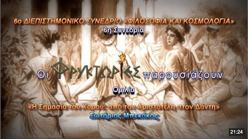 Τίτλος ομιλίας: «H ΣΗΜΑΣΙΑ ΤΟΥ ΧΟΡΟΥ: ΑΠΟ ΤΟΝ ΑΡΙΣΤΟΤΕΛΗ ΣΤΟΝ ΔΑΝΤΗ».