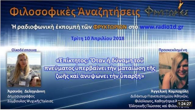 Η συνέντευξη παραχωρήθηκε στην ραδιοφωνική εκπομπή των Φρυκτωριών και της Αρσινόης Δεληγιάννη «Φιλοσοφικές αναζητήσεις».