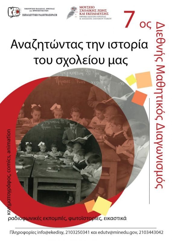 Tο Μουσείο Σχολικής Ζωής και Εκπαίδευσης του Εθνικού Κέντρου Έρευνας και Διάσωσης Σχολικού Υλικού (ΕΚΕΔΙΣΥ) και το Τμήμα Εκπαιδευτικής Ραδιοτηλεόρασης και Ψηφιακών Μέσων της Διεύθυνσης Υποστήριξης Προγραμμάτων και Εκπαίδευσης για την Αειφορία του Υπουργείου Παιδείας, Έρευνας και Θρησκευμάτων συνδιοργανώνουν τον 7ο Διεθνή Μαθητικό Διαγωνισμό με τίτλο: