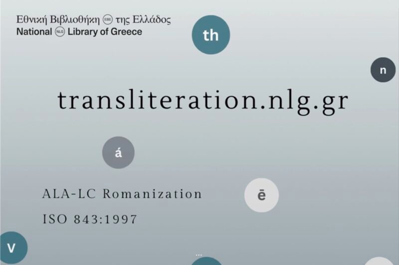 Νέα Υπηρεσία Μεταγραφής Ελληνικών Χαρακτήρων σε Λατινικούς από την Εθνική Βιβλιοθήκη της Ελλάδος