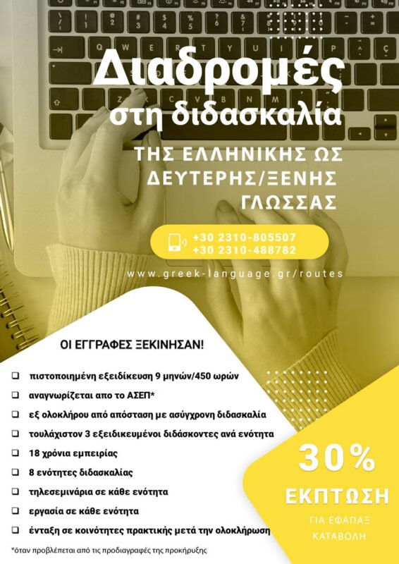 Νέα περίοδος του εξ αποστάσεως επιμορφωτικού προγράμματος «Διαδρομές στη διδασκαλία της ελληνικής ως δεύτερης/ξένης γλώσσας» για διδάσκοντες στην Ελλάδα και το εξωτερικό
