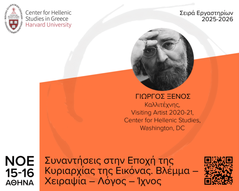 Το πρώτο εργαστήριο ΚΕΣ για τη νέα ακαδημαϊκή χρονιά θα εστιάσει στην τέχνη. Ο καλλιτέχνης Γιώργος Ξένος, θα μας υποδεχθεί στο ατελιέ του και θα συντονίσει το εργαστήριο με θέμα: Συναντήσεις στην Εποχή της Κυριαρχίας της Εικόνας. Βλέμμα – Χειραψία – Λόγος – Ίχνος.