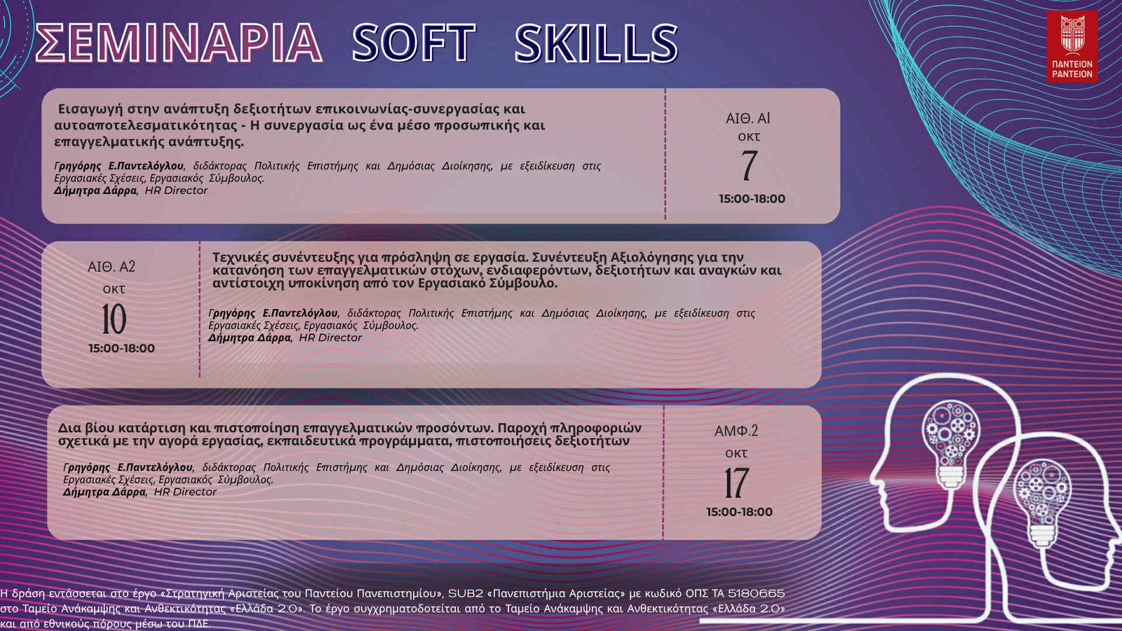 Το Πάντειο Πανεπιστήμιο διοργανώνει εκπαιδευτική ενέργεια με αντικείμενο τη δια βίου κατάρτιση και την πιστοποίηση επαγγελματικών προσόντων. Στόχος είναι η ενημέρωση σχετικά με τις τάσεις της αγοράς εργασίας, τα διαθέσιμα εκπαιδευτικά προγράμματα και τις δυνατότητες πιστοποίησης δεξιοτήτων που υποστηρίζουν την επαγγελματική ανάπτυξη.